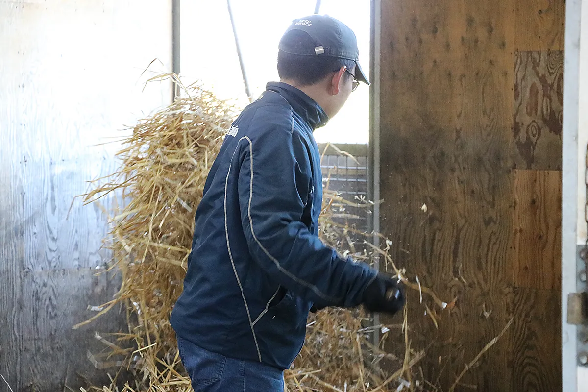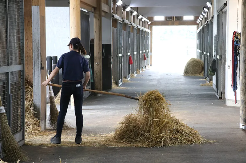 ところが、インターンシップが始まると、厩舎長の方が一つ一つ丁寧に作業を教えてくださり、すぐに作業に慣れることができました。また、他のスタッフも同年代や私より若い方が多く、すぐに打ち解けることができたおかげで、4日目には北海道に来る前に抱いていた不安は自然となくなっていました。